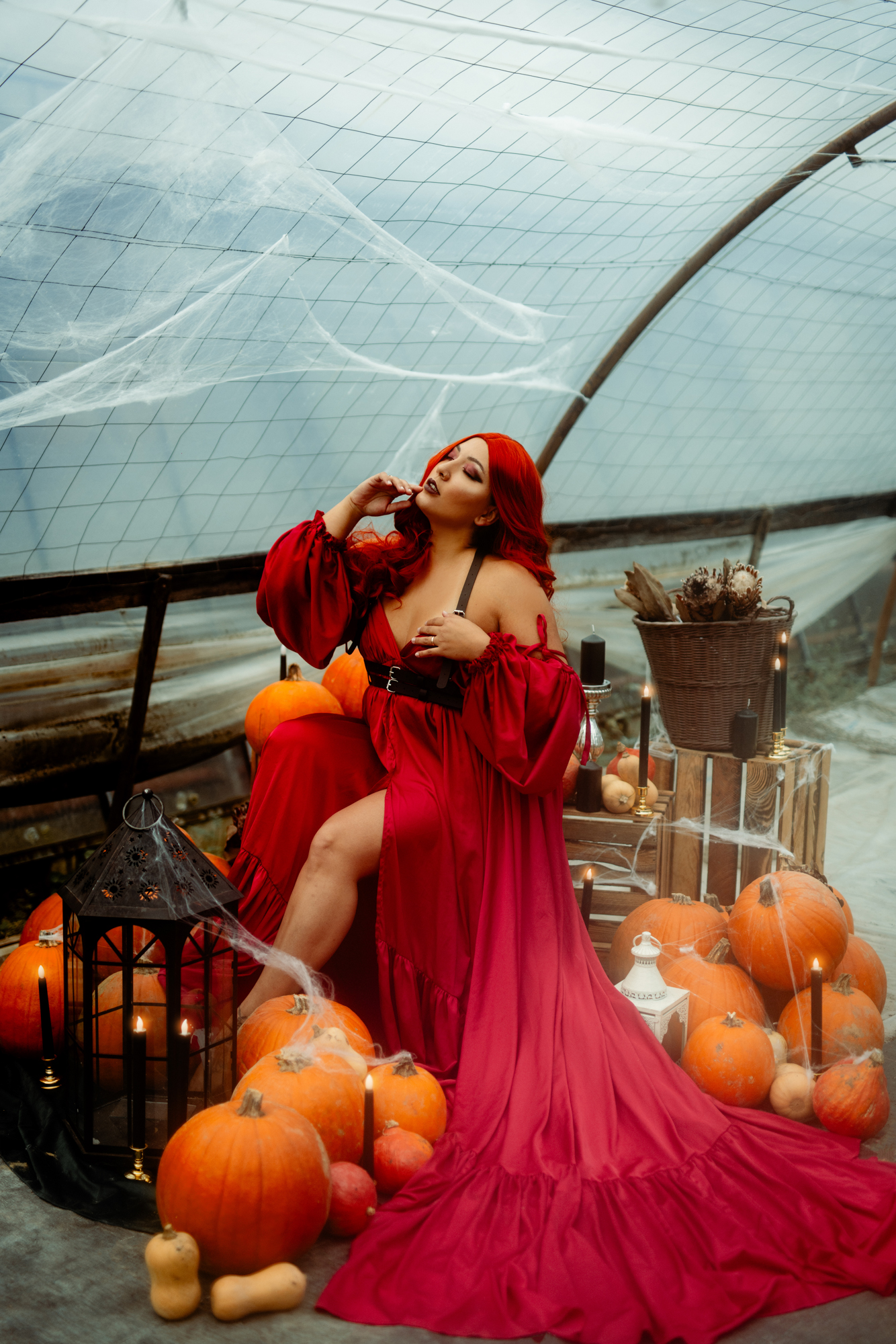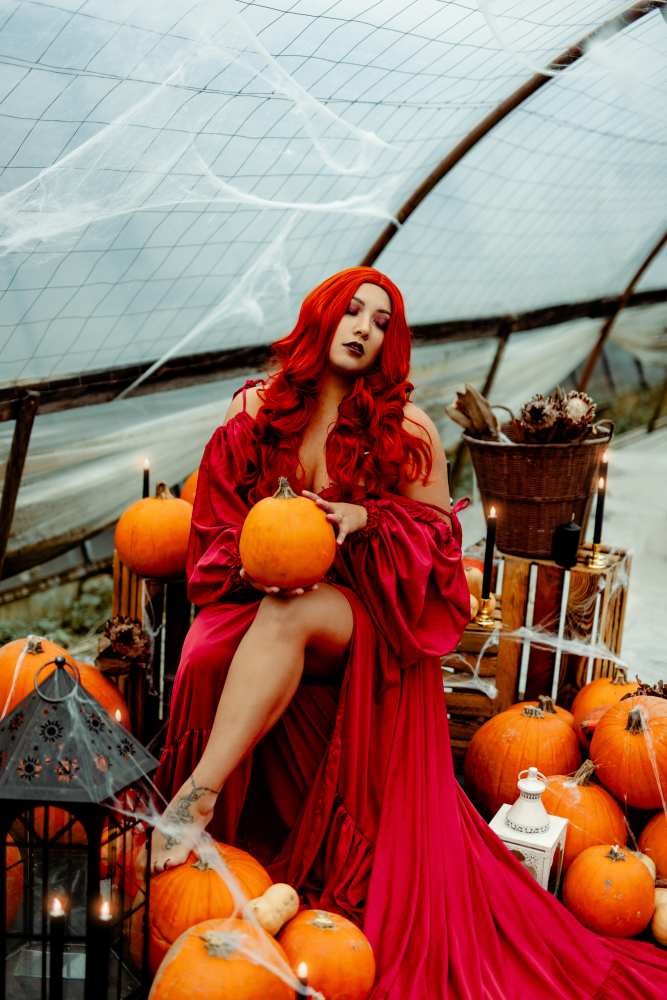 In unserem Herbst & Halloween Set mit ca. 100 Kürbissen könnt ihr euch den gesamten Oktober fotografieren lassen! Egal ob schöne Herbstportraits oder im Halloween Stil! Das Styling ist immer inbegriffen. Außerdem könnt ihr Kleider aus unserem Fundus aussuchen.